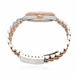 Please note: Customizations, including diamond additions to the bezel, render this Rolex watch non-waterproof. Handle with care.