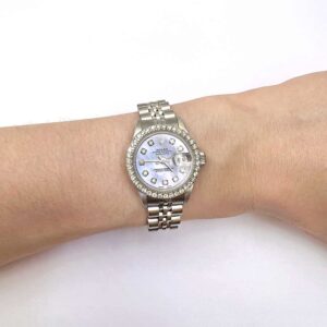 Rolex Datejust Custom Blue 69173 MOP Diamond Dial Bezel Jubilee Band 26mm Watch