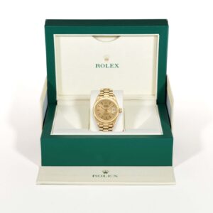 The Rolex Datejust 31MM Model 68278 is a refined classic crafted in 18K yellow gold. Featuring a champagne stick dial, Oyster Perpetual automatic movement, and timeless design, this pre-owned watch embodies Rolex prestige and elegance.