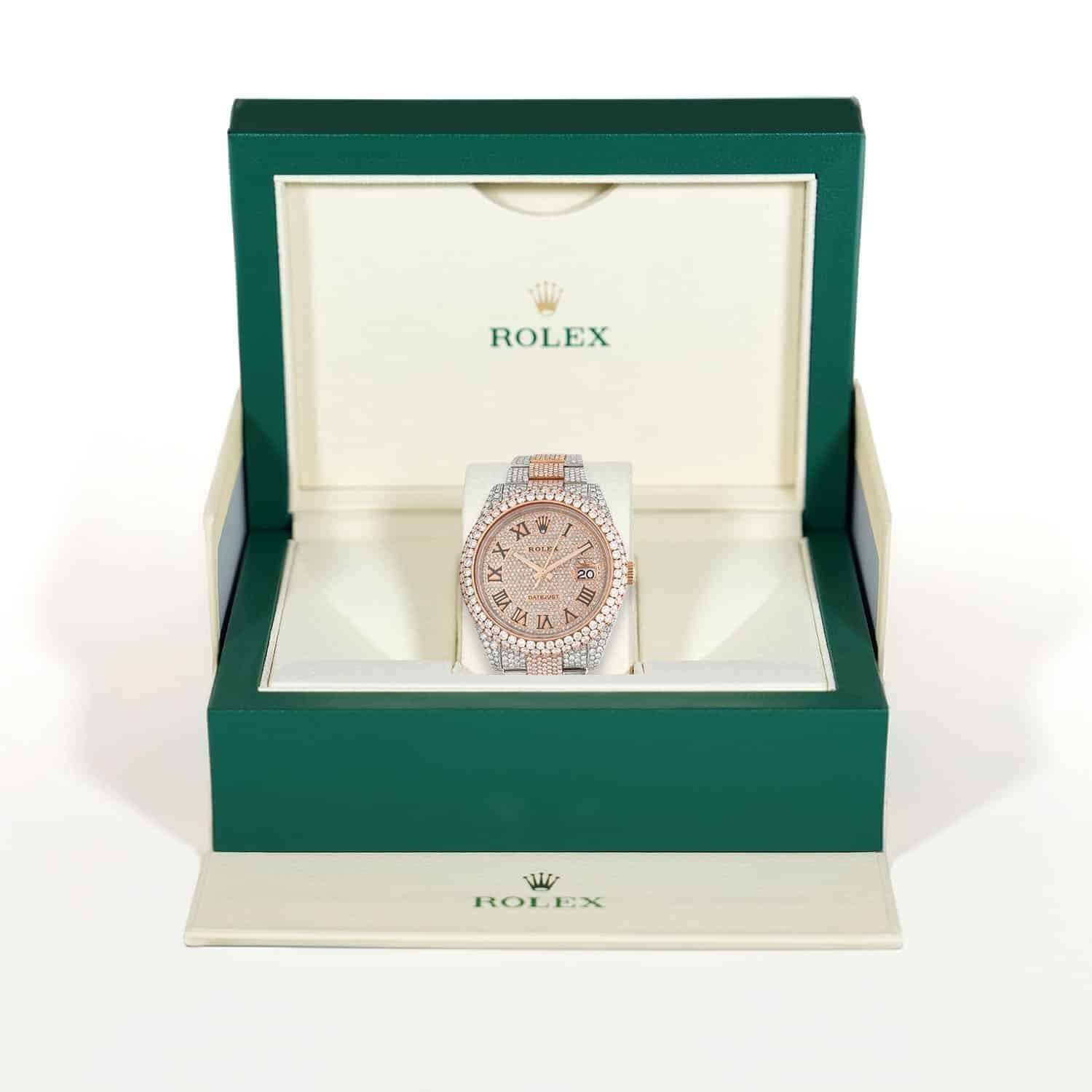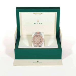 Experience the ultimate luxury and style with this Rolex Datejust Automatic watch. The 41mm watch features a 2-tone 18K Gold design with a full pave of natural diamonds on the bezel and dial, adding a touch of elegance and sparkle to the iconic design. The automatic movement and durability of a Rolex make this a reliable and stylish timepiece, perfect for any occasion. This Rolex was released in the 1990s.