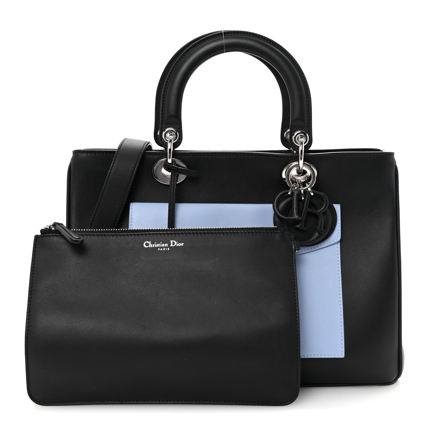 Smooth Calfskin Tri-Color Diorissimo Pocket Tote Black Blue Red