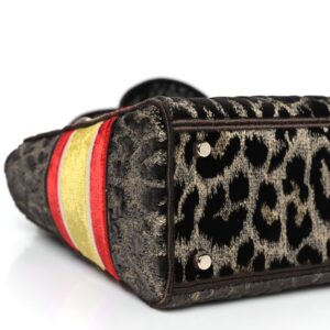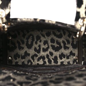 This is an authentic CHRISTIAN DIOR Velvet Mizza Embroidered Medium Lady D-Lite in Beige and Multicolor. This handbag is finely crafted of embroidered beige velvet fabric with a leopard print, adorned with a ‘Christian Dior’ signature on the front and features fabric top handles and shoulder strap both with matching leopard print, including gold hardware. This bag also includes a Dior letters gold charm. The top opens to a matching Dior fabric interior with a pocket.