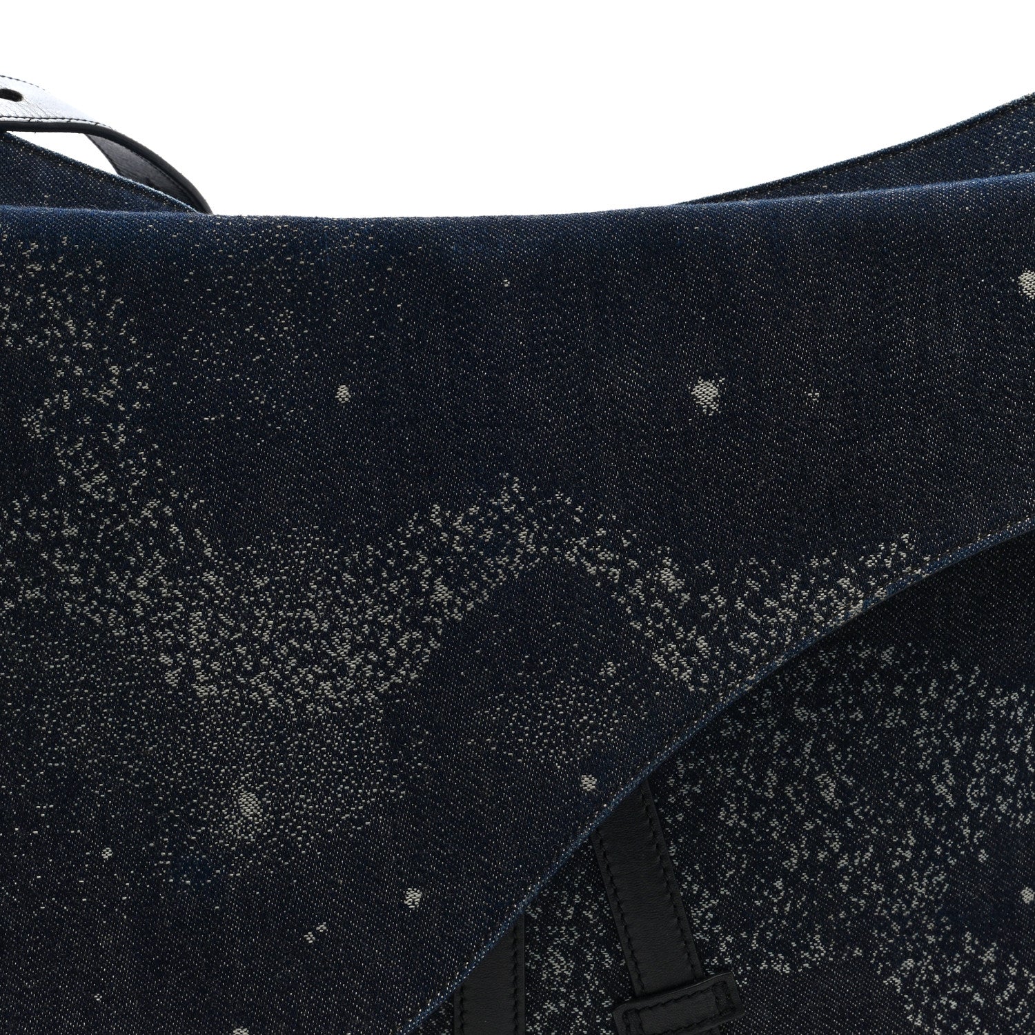 This is an authentic CHRISTIAN DIOR X PETER DOIG Denim Printed Saddle Soft Bag in Black and Multicolor. This Dior messenger bag is crafted of dark blue denim with black leather trim. This shoulder bag features a saddle-shaped front pocket, an optional, adjustable black leather strap with silver hardware, and a matching handle. The top zipper opens to a spacious black fabric interior with a patch pocket.